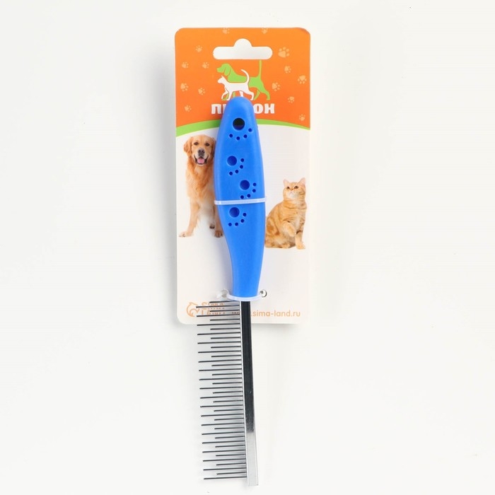 Расческа предназначена для тщательного ухода за шерстью кошек и собак. Она легко удаляет частички пыли и грязи с шерсти животного, не повреждая поверхность кожи и не травмируя структуру шерсти.