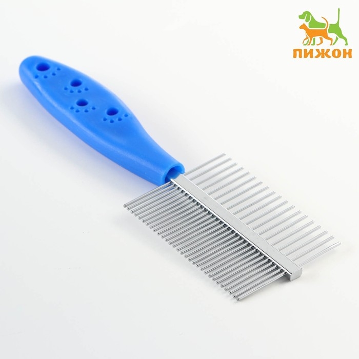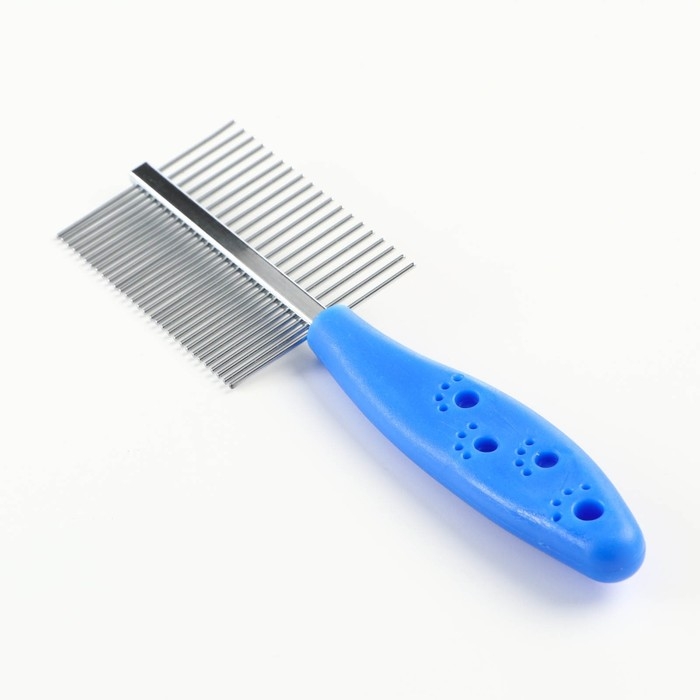 Расчёска двухсторонняя "Лапки" с прямыми зубьями, пластиковая ручка, синяя