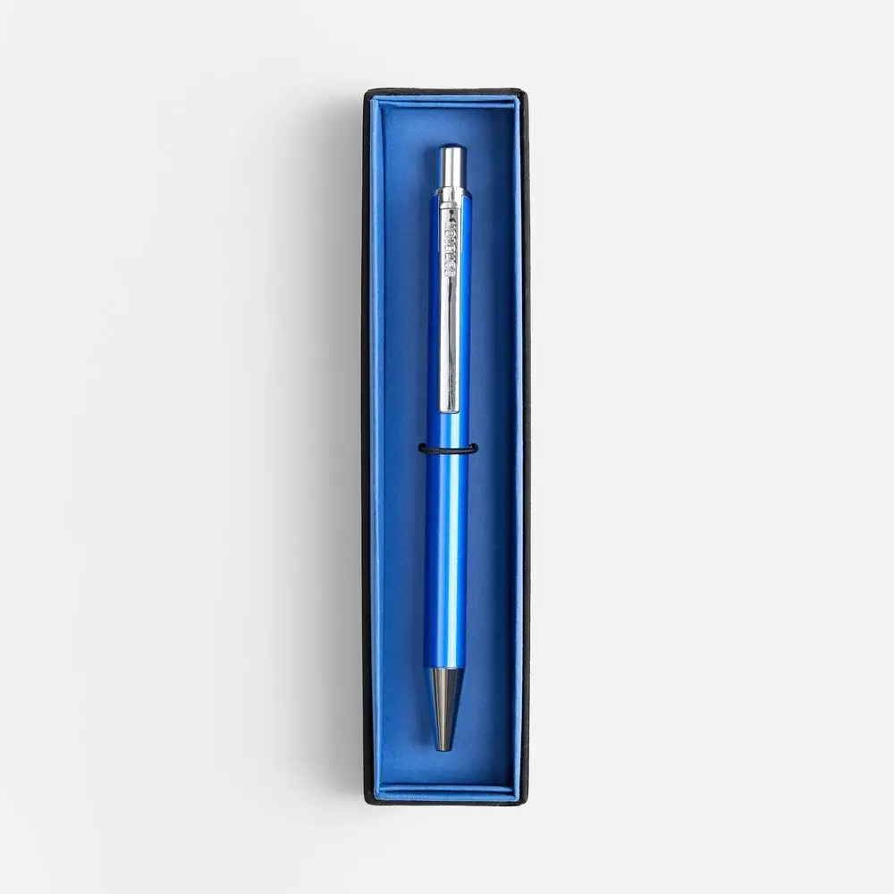 Шариковая ручка в лакированном корпусе с хромированными деталями. Футляр из дизайнерской бумаги с контрастным коробом придает подарку законченный и элегантный вид.