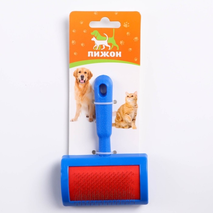 Пуходёрка пластиковая с функцией самоочистки, 7,7 х 19,1 см, голубая