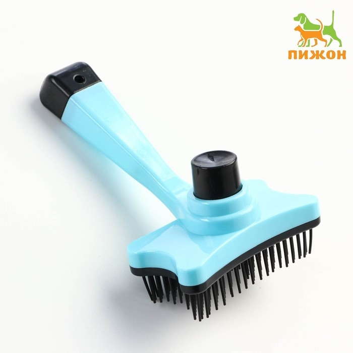 Пуходерка пластиковая "Косточка" с самоочисткой, 8,5 х 12,5 см, голубая