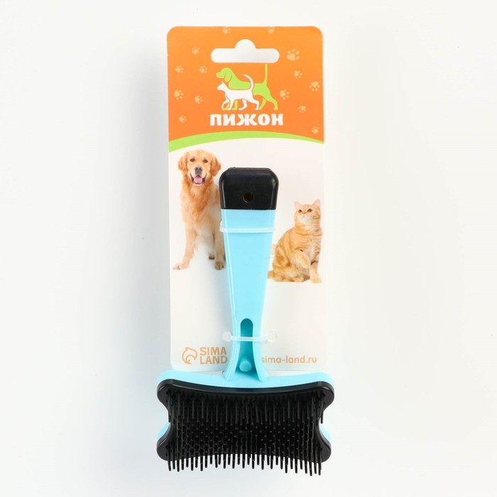 Пуходёрка пластиковая с функцией самоочистки, 7,7 х 19,1 см, голубая