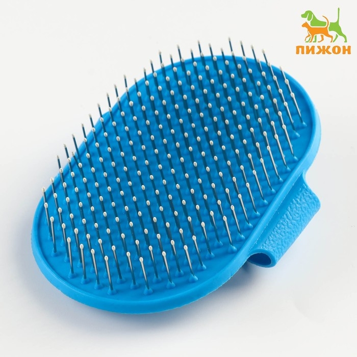 Расчёска-наладонник с металлическими зубьями, 13 х 8,5 см, голубая