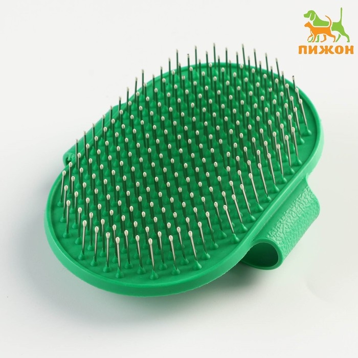 Расчёска-наладонник с металлическими зубьями, 13 х 8,5 см, зелёная
