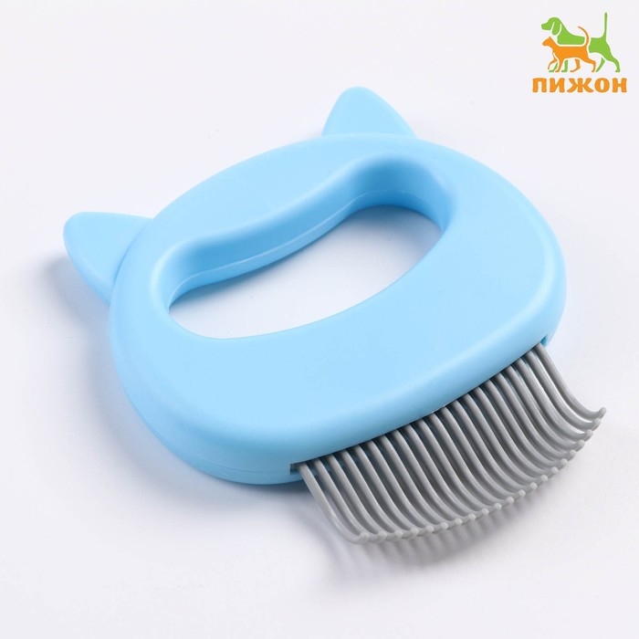 Расчёска для шерсти с загнутыми пластиковыми зубцами, 21 зубчик, 10 х 9 см, голубая