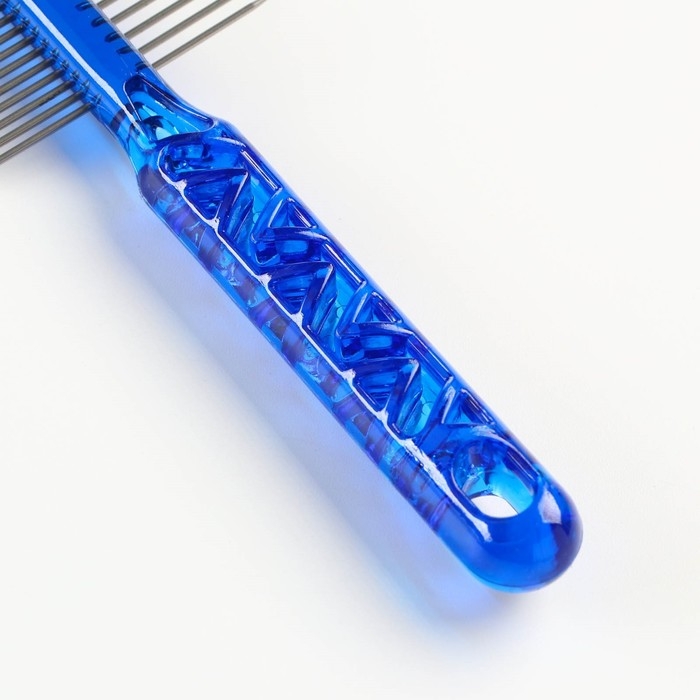 Расчёска для шерсти "Пузырьки" двухсторонняя, прозрачная, 19,5 х 5,6 см, синяя