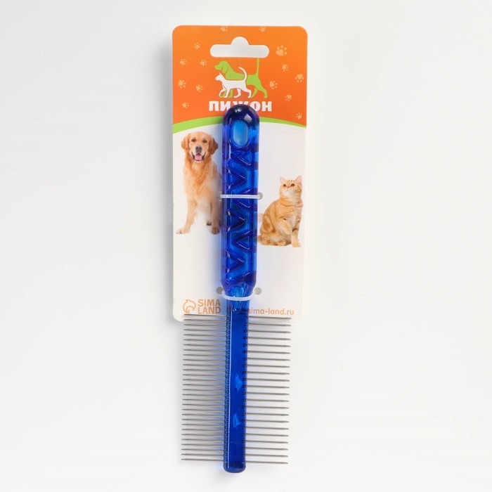 С одной стороны расчески частые зубцы, с другой - более редкие, что позволяет с ее помощью ухаживать за шерстью разных животных.