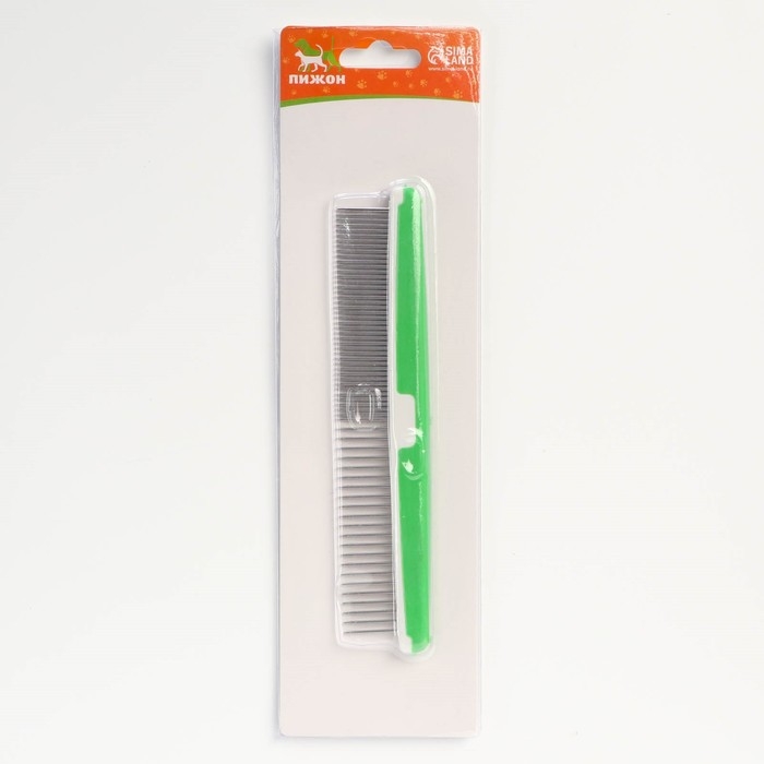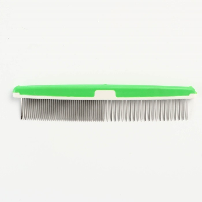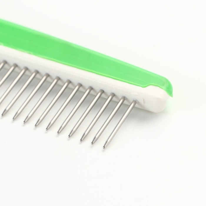 Расчёска для шерсти с пластиковой ручкой, 17 х 3,5 см, зелёная