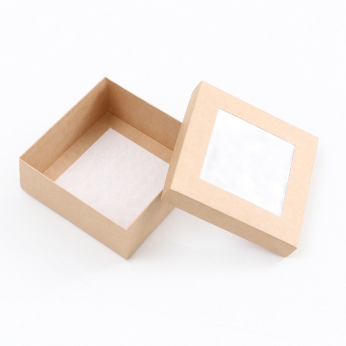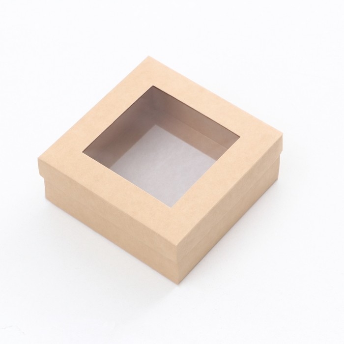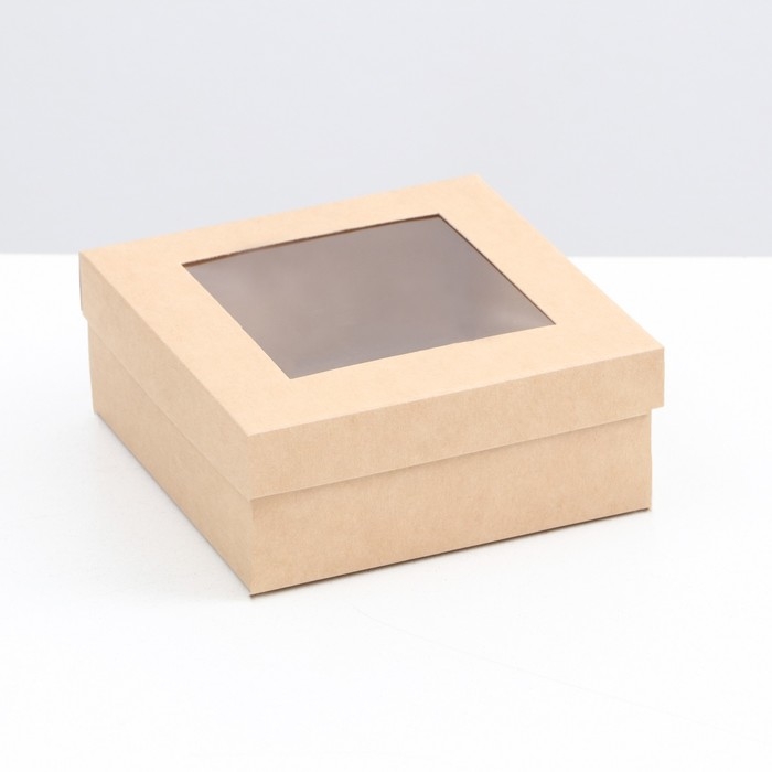 Коробка складная, крышка-дно, с окном, крафтовая, 12 х 12 х 5 см