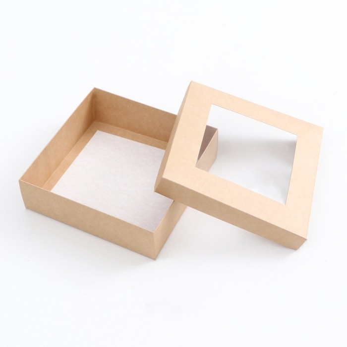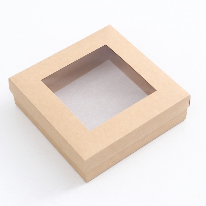 Коробка складная, крышка-дно, с окном, крафтовая, 20 х 20 х 6 см