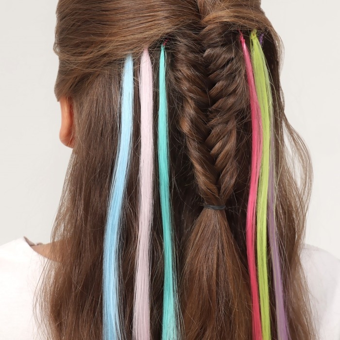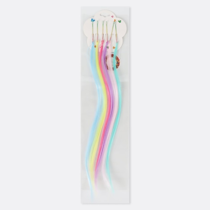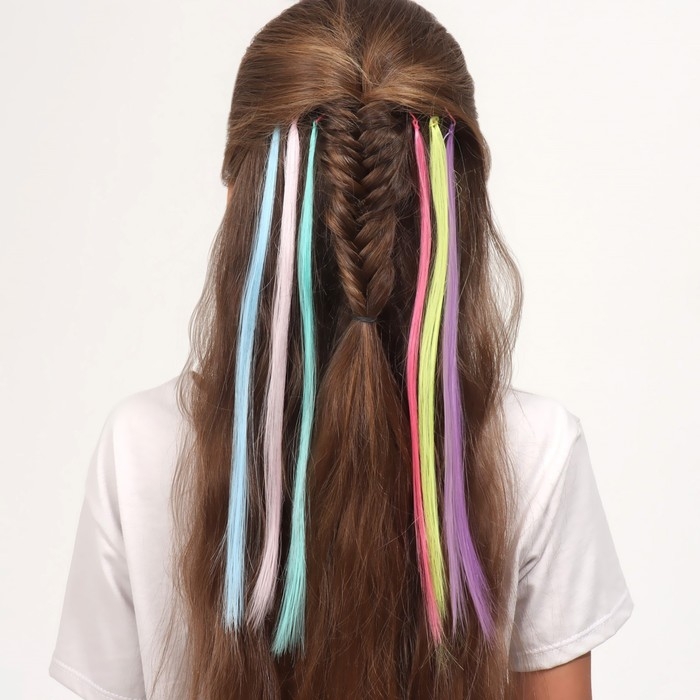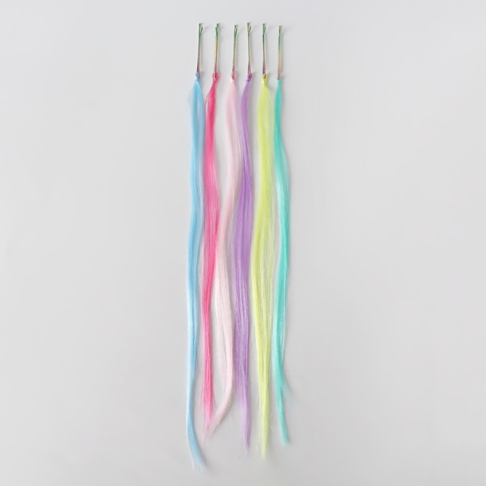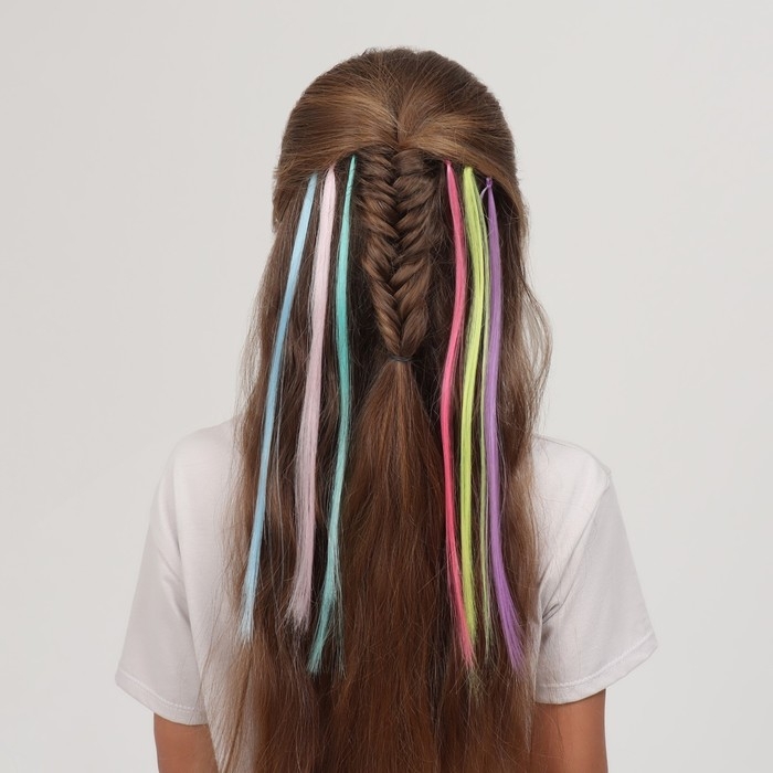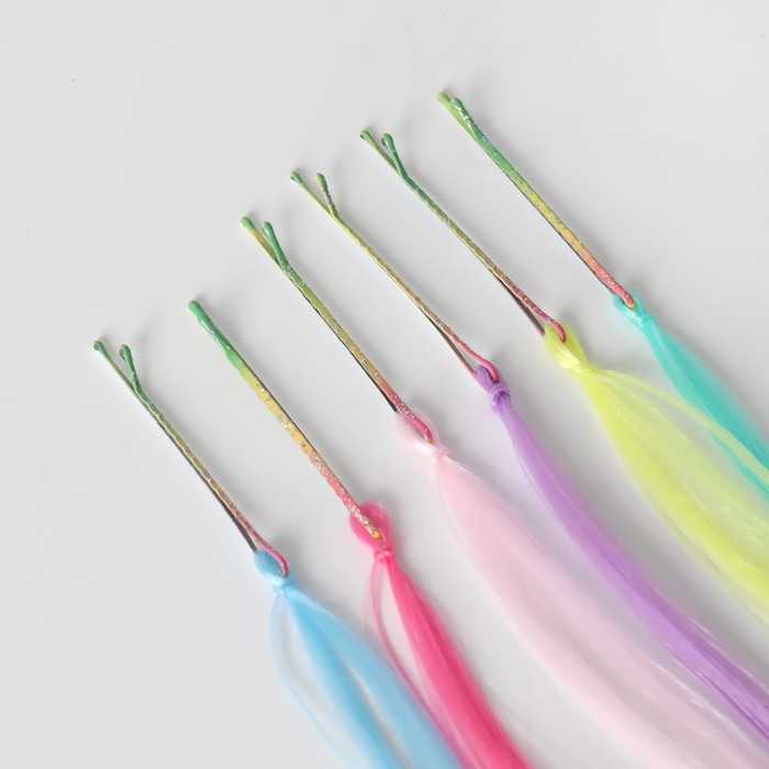 Набор локонов, прямой волос, на невидимке, 32 см, 6 прядей, люминесцентные, разноцветные