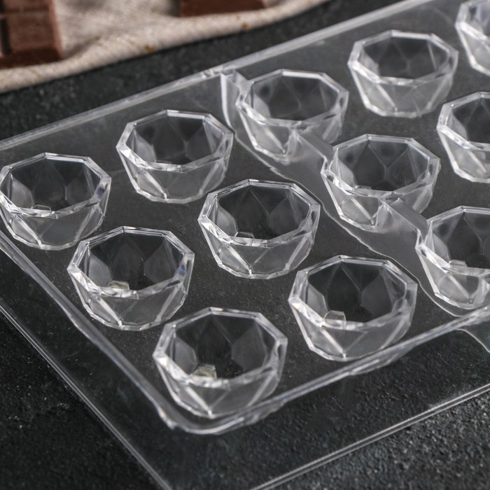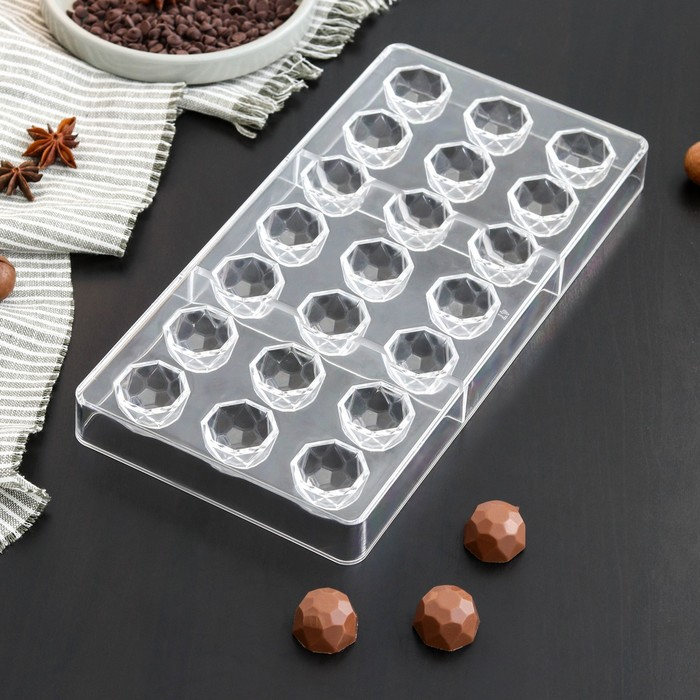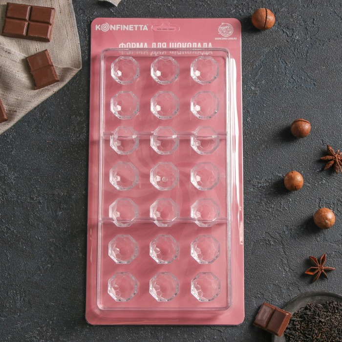 Форма для конфет и шоколада KONFINETTA «Бриллиант», 27,5×13,5 см, 21 ячейка d=2,5 см, цвет прозрачный