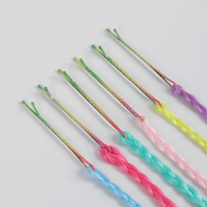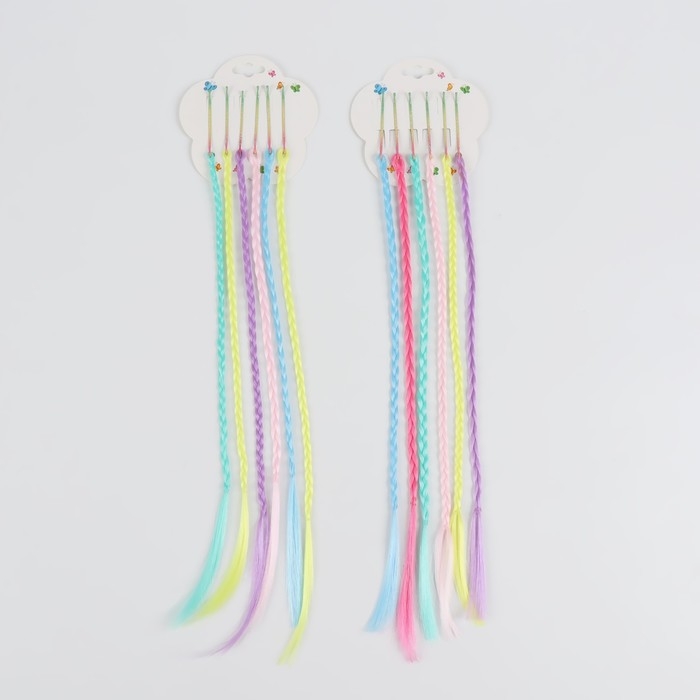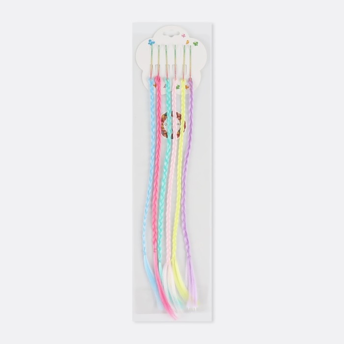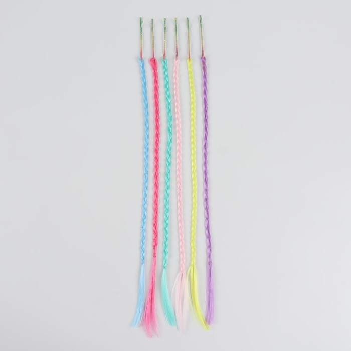 Набор косичек, на невидимке, 32 см, 6 косичек, люминесцентные, разноцветные