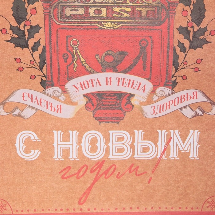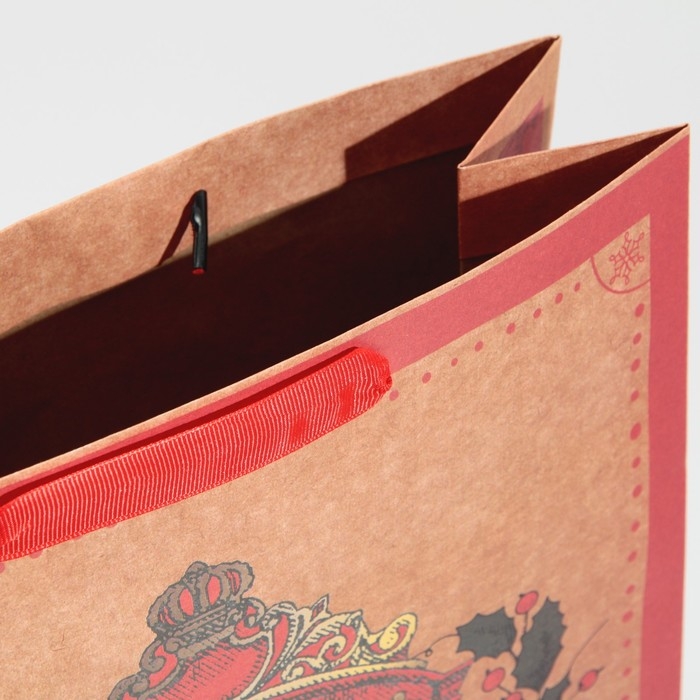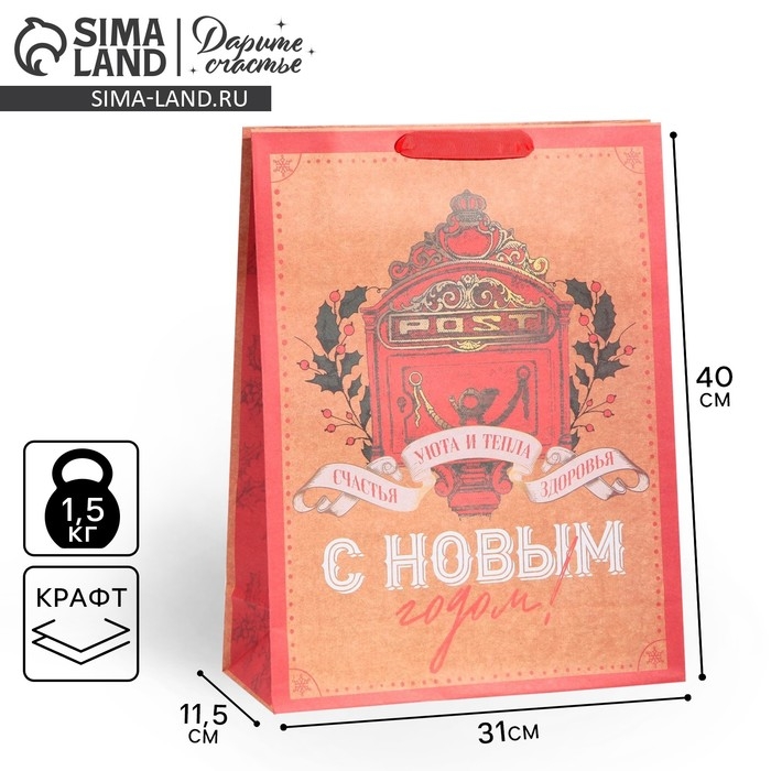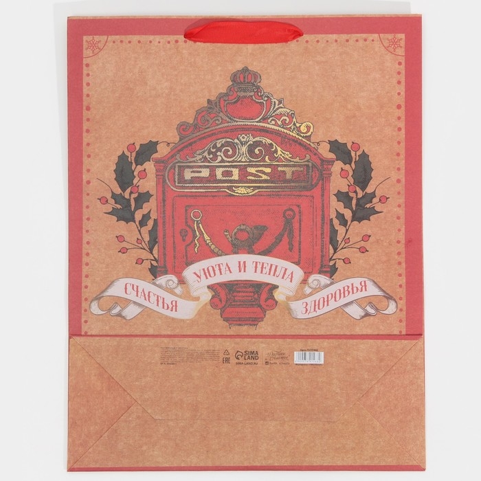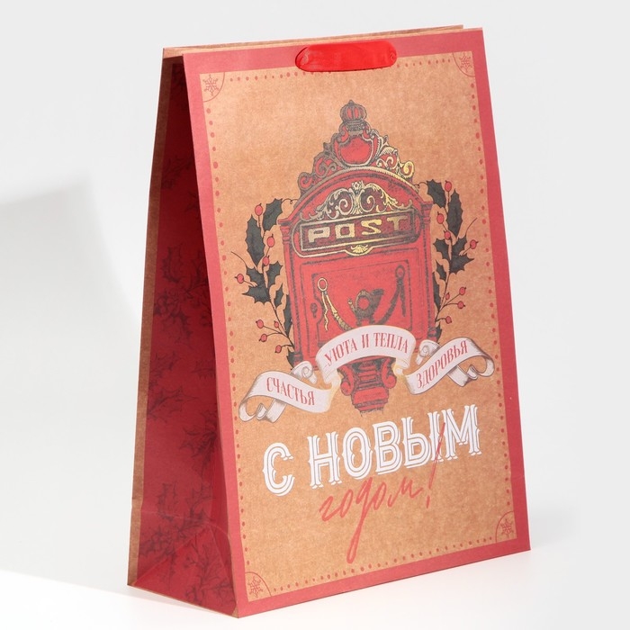 Пакет подарочный новогодний крафтовый вертикальный «Уют и тепло», L 31 х 40 х 11.5 см, Новый год