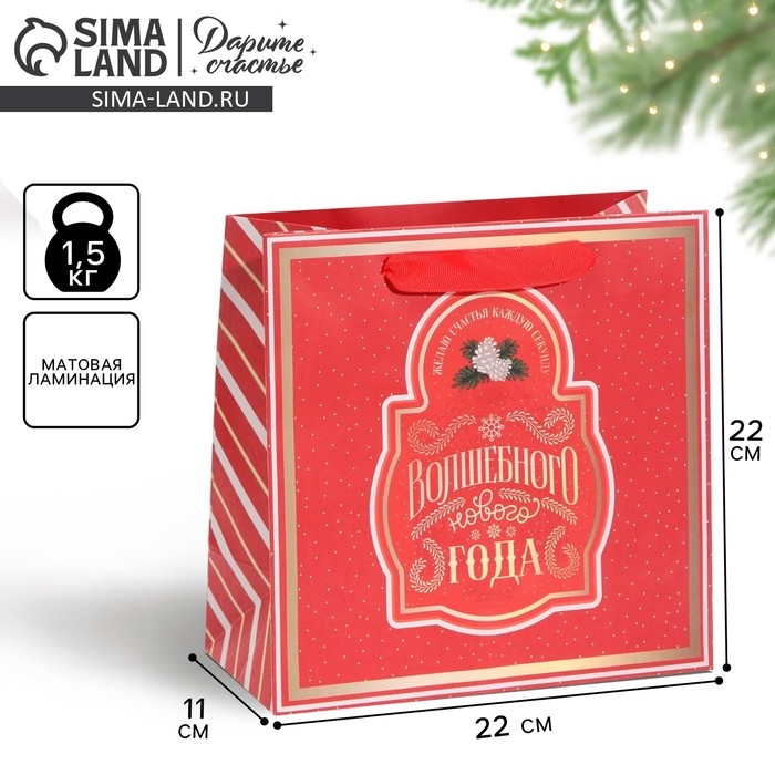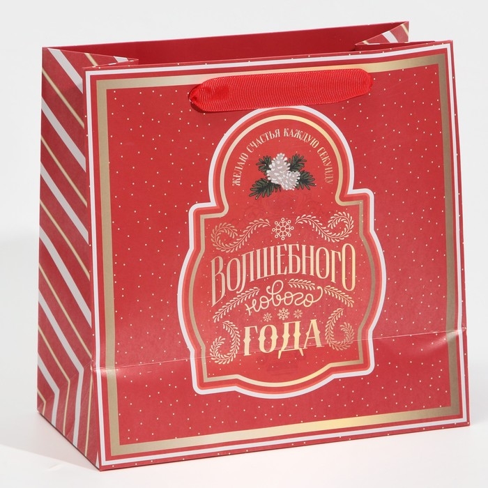 Пакет подарочный новогодний ламинированный квадратный «Вера в чудеса», 22 х 22 х 11 см, Новый год