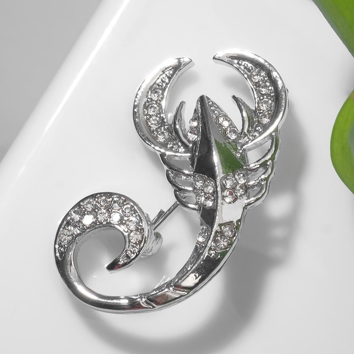Брошь «Скорпион» изящный, цвет белый в серебре
