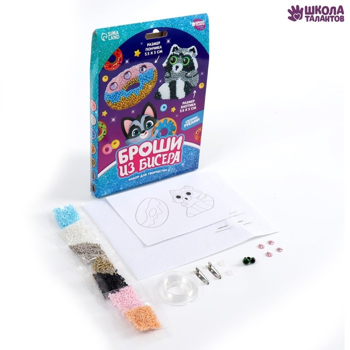 Вышивка бисером. Брошь «Енотик и пончик», набор для творчестваа