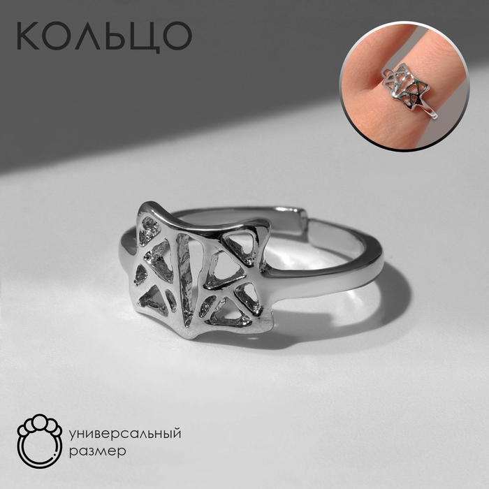 Кольцо «Лисичка» грани, цвет серебро, безразмерное