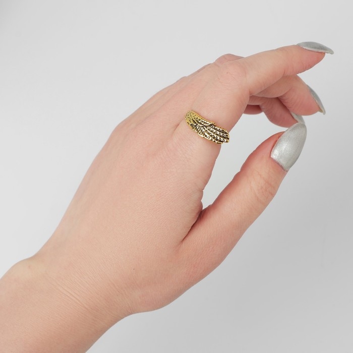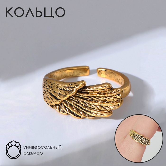 Кольцо «Перстень» крыло, цвет чернёное золото, безразмерное