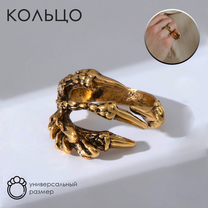 Кольцо «Перстень» хищник, цвет чернёное золото, безразмерное