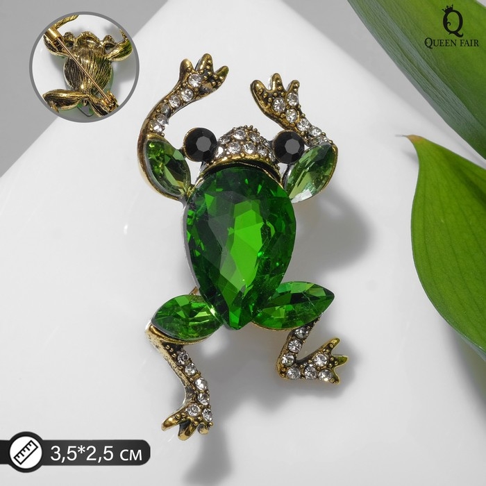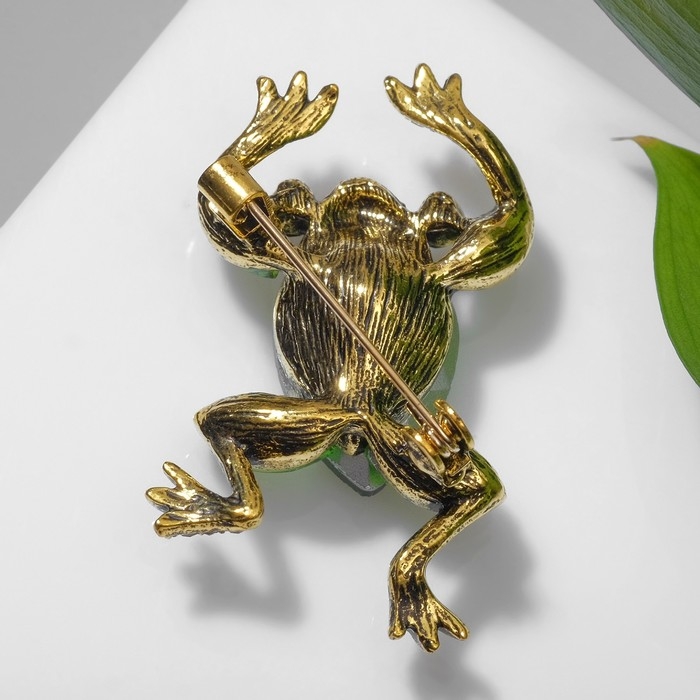 Брошь «Лягушка» драгоценная, цвет бело-зелёный в чернёном золоте