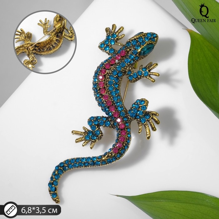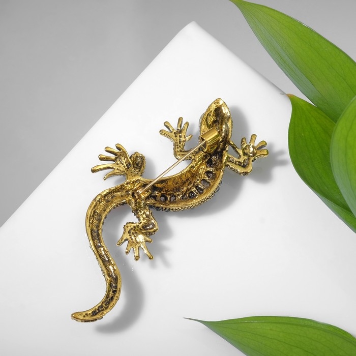 Брошь «Ящерица» изогнутая, цветная в чернёном золоте