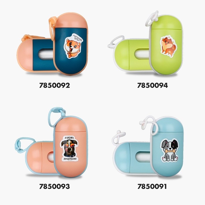 Контейнер с пакетами для уборки за собаками с фонариком (15 пакетов), 9,8х3,8х3,8 см, микс
