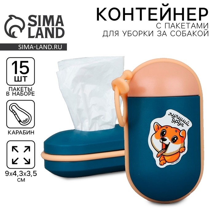 Контейнер с пакетами для уборки за собакой «Лучший друг», цвет тёмно-синий