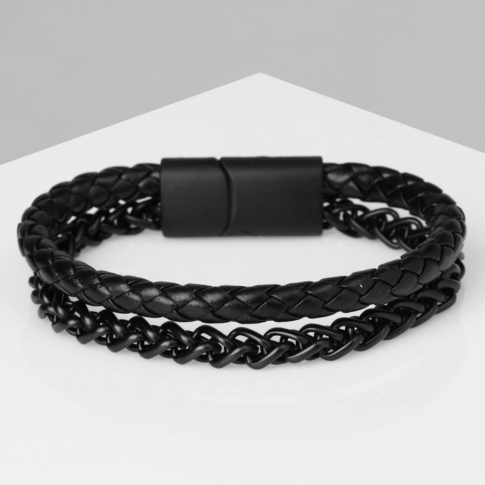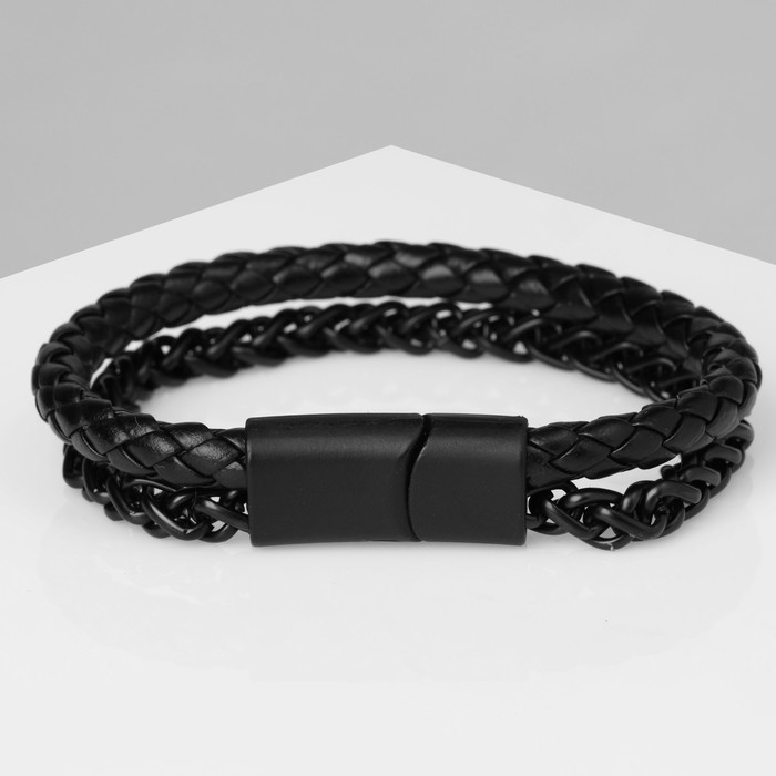 Браслет унисекс «Мощь» две косы, цвет чёрный с чёрным металлом, 20.3 см