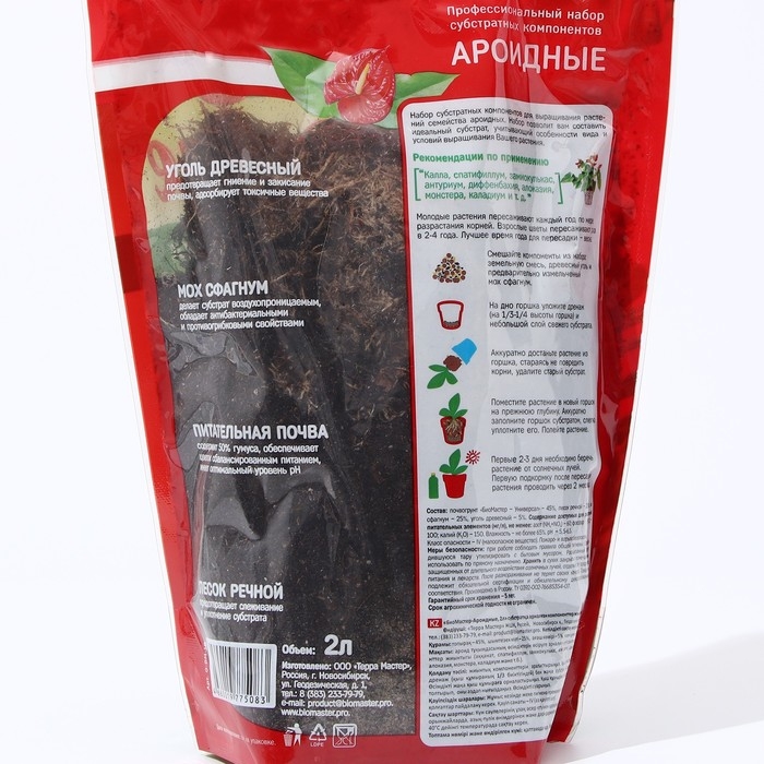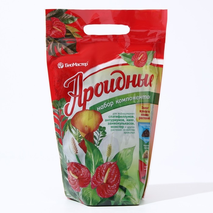 Набор субстратных компонентов для выращивания растений семейства ароидных (калла, спатифиллум, замиокулькас, антуриум, диффенбахия, алоказия и т. д.). Набор позволяет составить субстрат, учитывающий особенности вида и условий выращивания растения.
