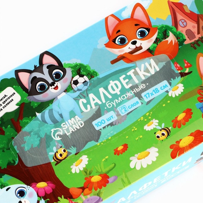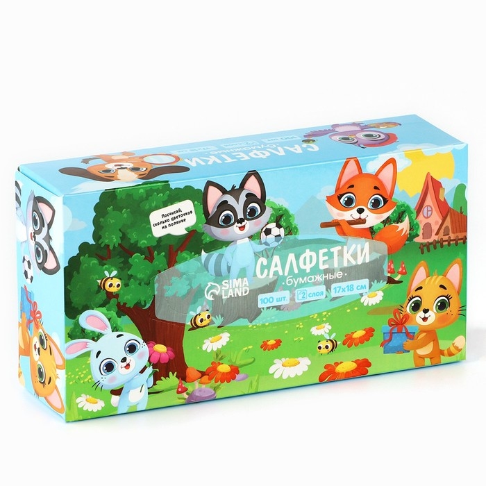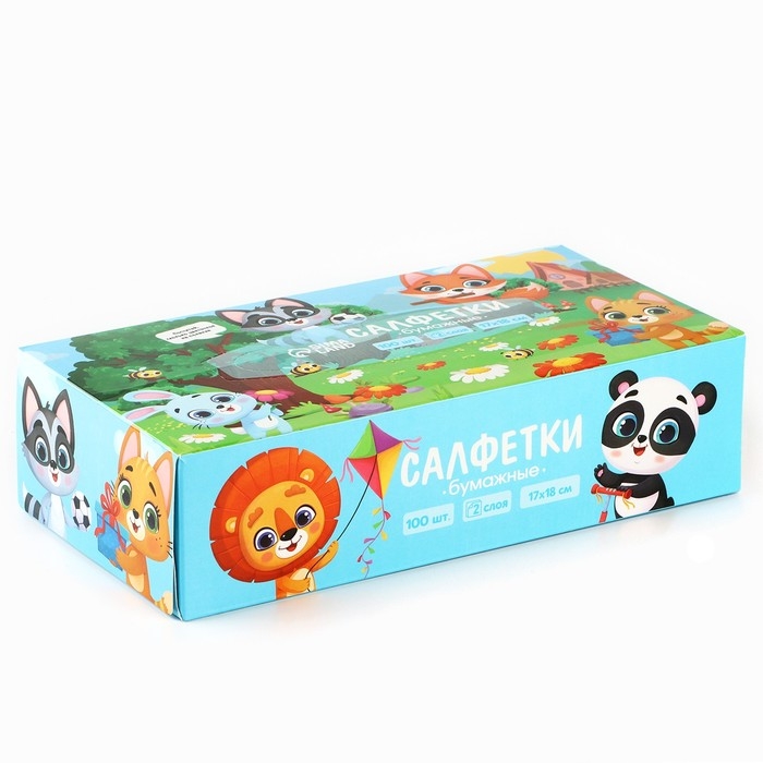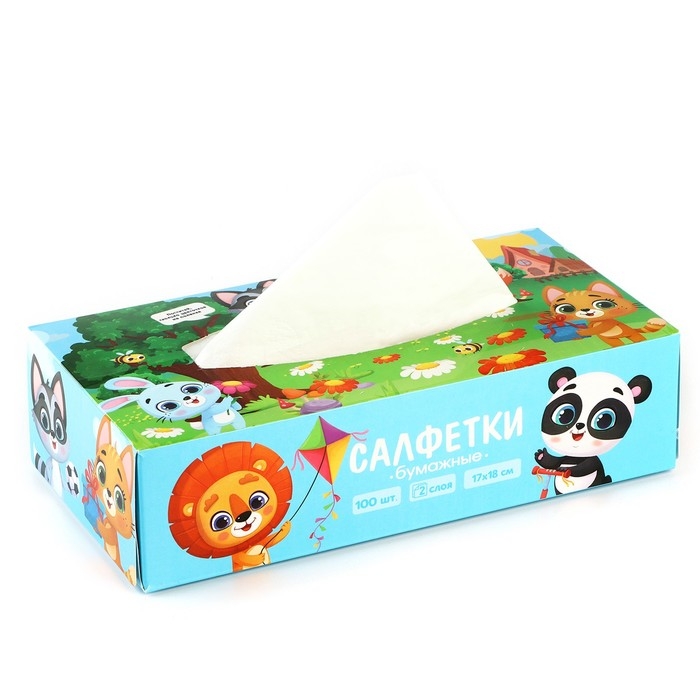 Салфетки бумажные в коробке «Детские», 100 шт, двухслойные