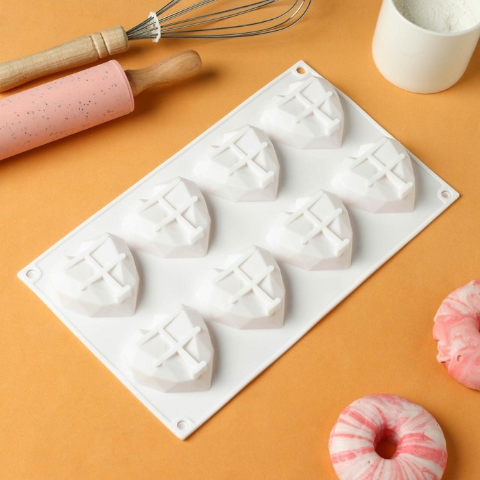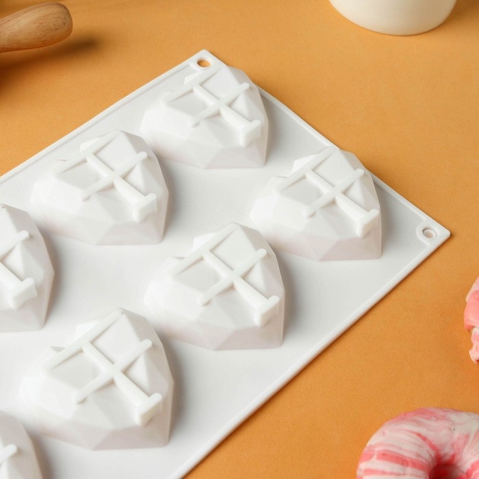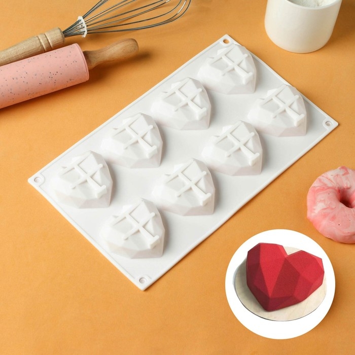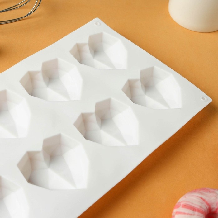 Форма для муссовых десертов Доляна «Сердце», силикон, 29×17×4,3 см, 8 ячеек (5,5×6,2×3,5 см), цвет белый