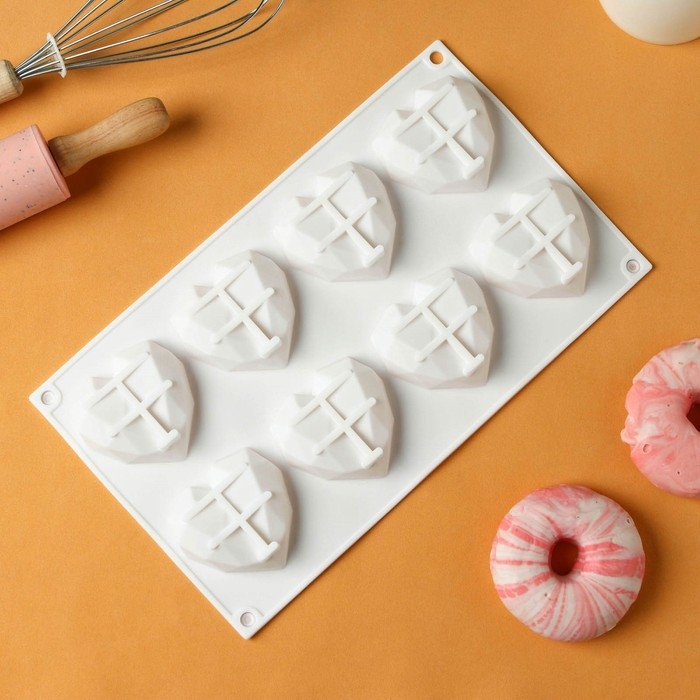 Форма для муссовых десертов и выпечки KONFINETTA «Вязаное сердце», силикон, 29,5×17×2 см, 8 ячеек (5,5×6,5×1,5 см), цвет белый