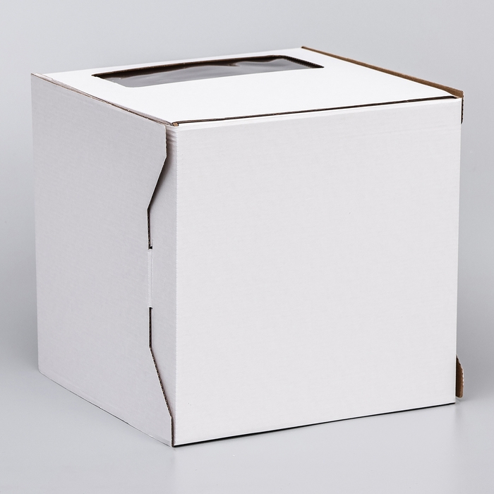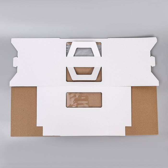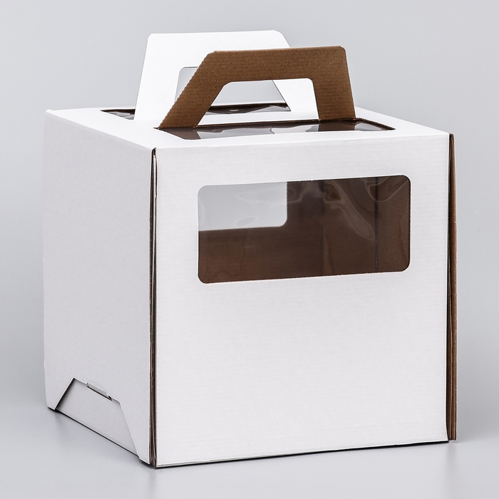 Коробка под торт 2 окна, с ручками, белая, 24 х 24 х 24