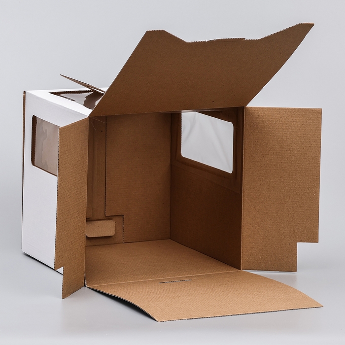 Коробка под торт 2 окна, с ручками, белая, Коробка для торта, десерта и выпечки. Кондитерская упаковка, упаковка для сладостей, пирожных, пирогов, подарочная коробка идеально подходит для переноса и перевозки тортов и десертов, кексов, пирожных. Прочная и удобная самосборная белая коробка для торта имеет 2 вклеенных окна. Конструкция легко собирается и надёжно защищает десерт внутри коробки. Смотрится красиво и празднично. Прекрасно украсит праздничный и сладкий стол на такие праздники как детский День Рождения, подарок любимой, свадьба, выпускной, девичник, мальчишник, юбилей и просто тематический вечер. С нашими коробками для выпечки и тортов вы сможете сделать незабываемый подарок на: день рождения, подарок любимой, пасха, 8 марта, 23 февраля, новый год. Хорошо подойдет пекарням, кондитерским магазинам и домашним кондитерам.
