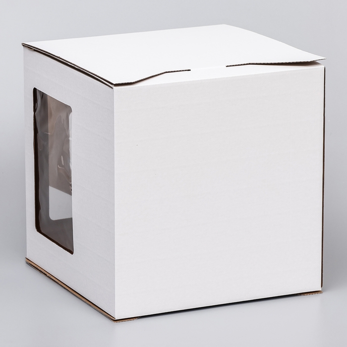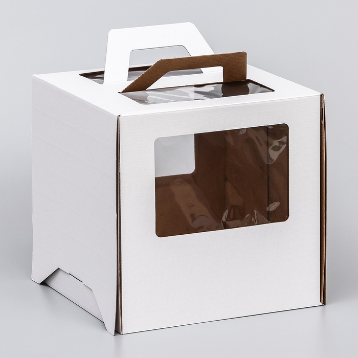 Коробка под торт 2 окна, с ручками, белая, 26 х 26 х 26 см