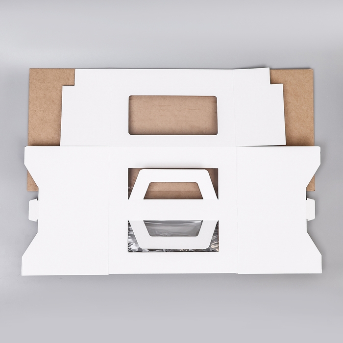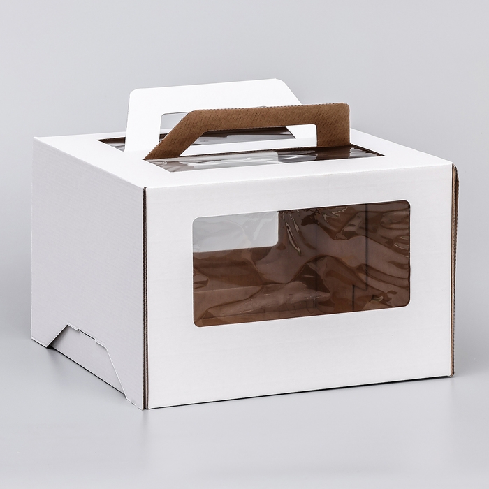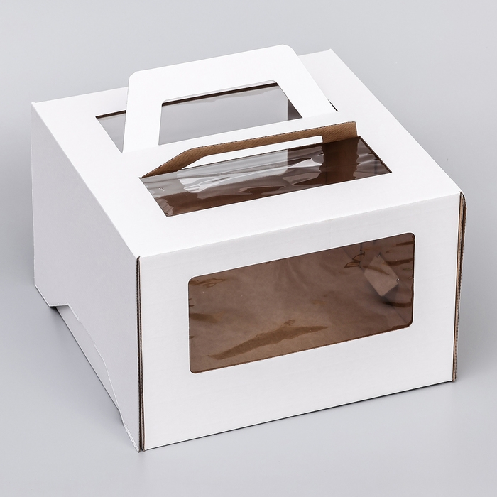 Коробка под торт 2 окна, с ручками, белая, 30 х 30 х 20 см