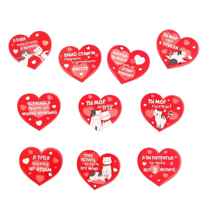 Набор комплиментов-пожеланий "10 любовных признаний", котики, 10 шт. ,11,4 х 14,5 см