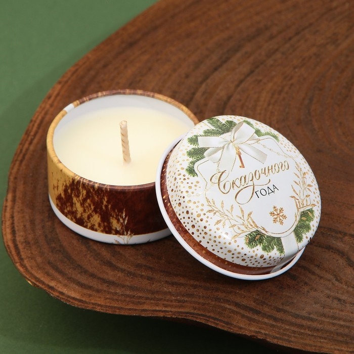 Новогодняя Свеча новогодняя в железной банке «Новый год: Сказочного года», аромат еловые шишки, диам. 4,8 см