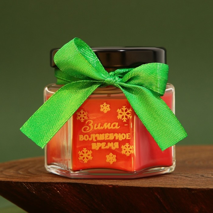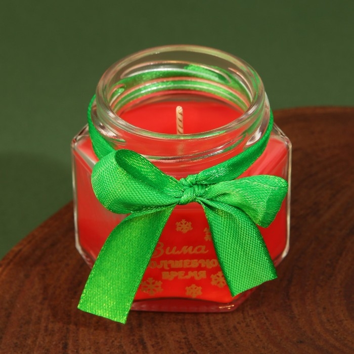Новогодняя свеча в банке «Новый год: Зима - волшебное время», аромат лесные ягоды, 5,5 х 5 х 5,5 см.