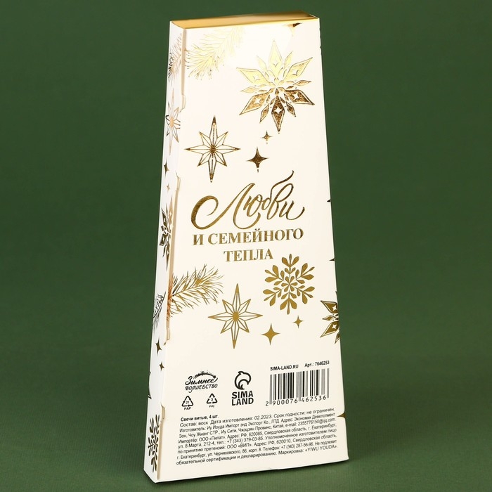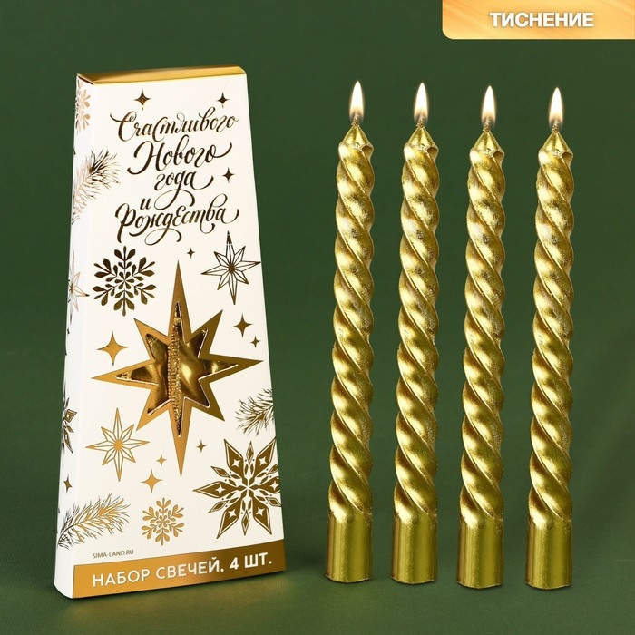 Новогодние свечи витые «Новый год: Счастья в Новом году», без аромата, набор 4 шт, высота 15 см