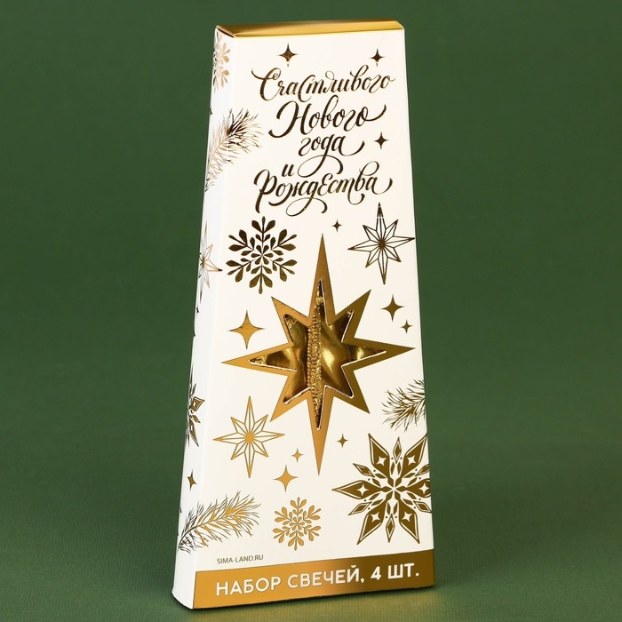 Новогодние восковые свечи «Новый год: Верь в чудеса», набор 4 шт., зеленые, 15 х 1 х 1 см.