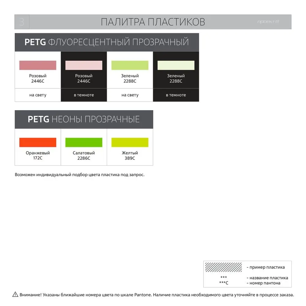 Отправляя запрос, укажите в поле «Примечание» формы заказа цвет пластика. Варианты цветов можно посмотреть в разделе «Фотографии».