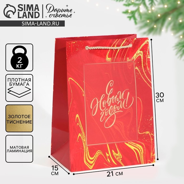 Пакет подарочный новогодний ламинированный «Рубин», 21 х 30 х 15 см, Новый год