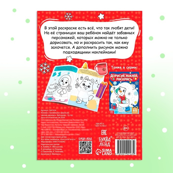 Книжка с наклейками «Дорисуй, наклей, раскрась. Зайчонок», 16 стр., 50 наклеек