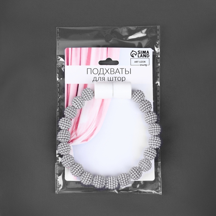 Подхват для штор «Бусы из бисера», d = 1,3 см, 30 см, цвет серый