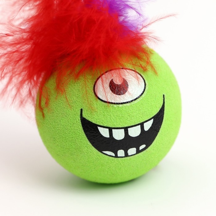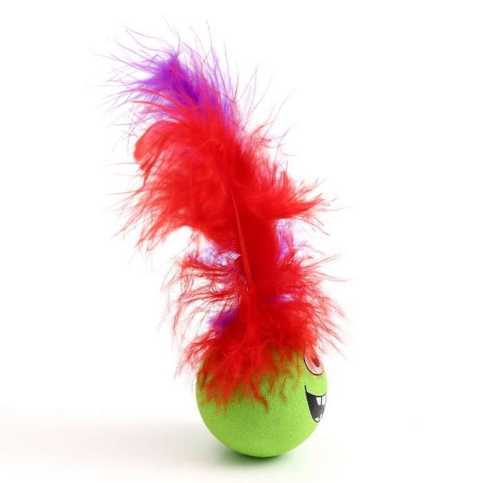 Шарик для кошек с перьями "Эмоции", 5 см, зелёный