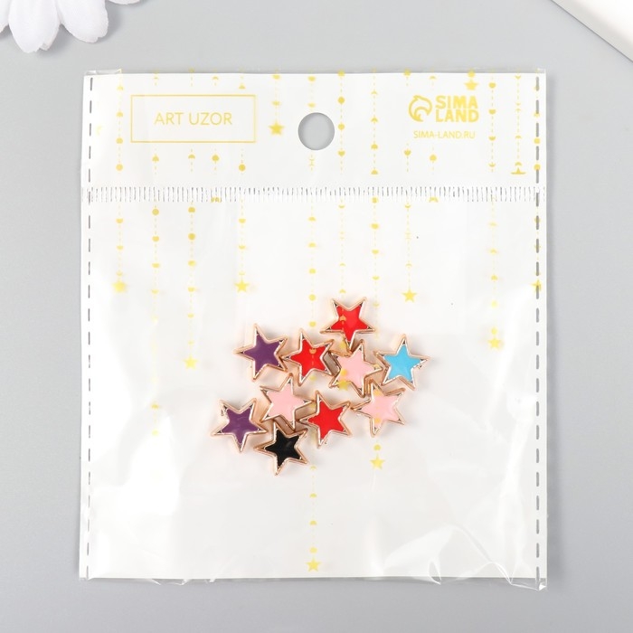 Набор бусин для творчества пластик "Звёзды, яркий глянец" МИКС набор 10 шт 1,1х1,1 см