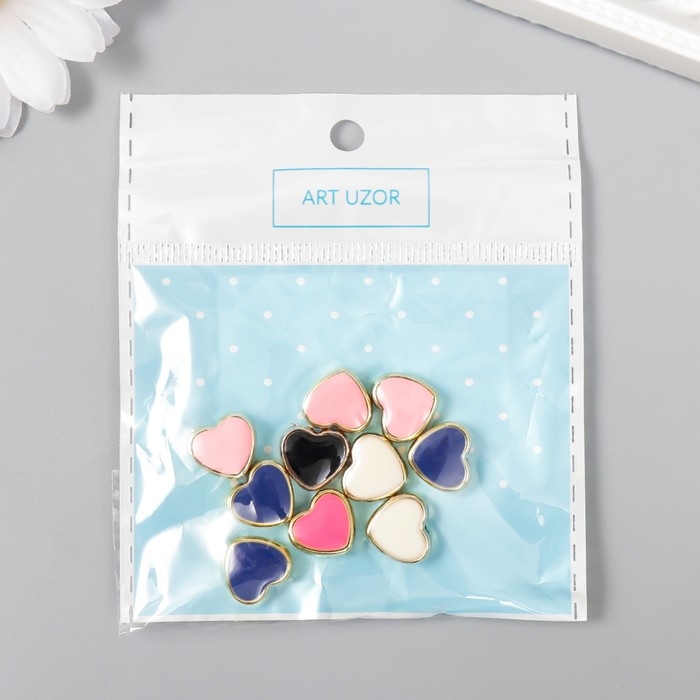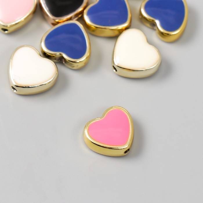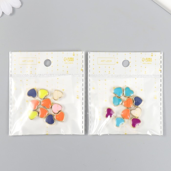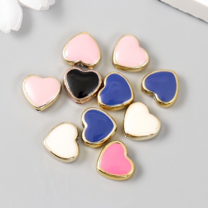 Набор бусин для творчества пластик "Сердечки, яркий глянец" МИКС 10 шт 1,2х1,2 см