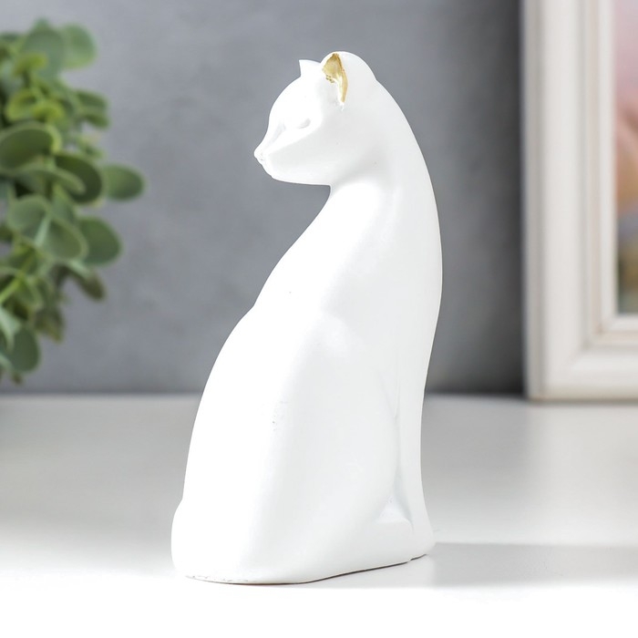 Сувенир полистоун "Белая кошка с золотыми ушками" 4х6,5х10,7 см